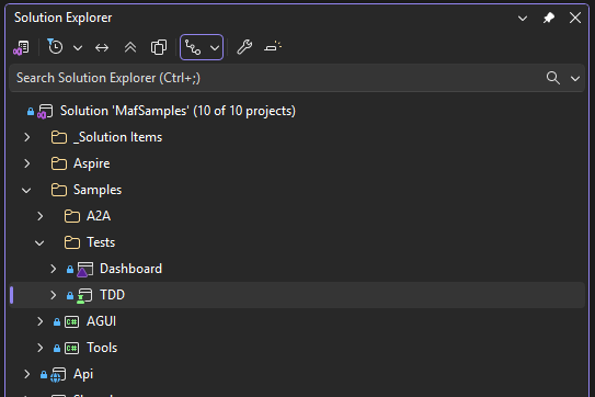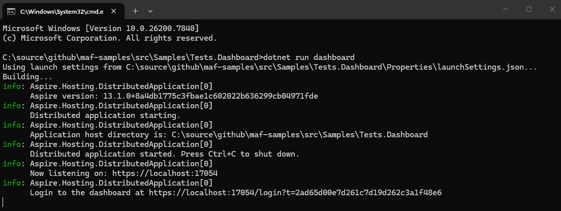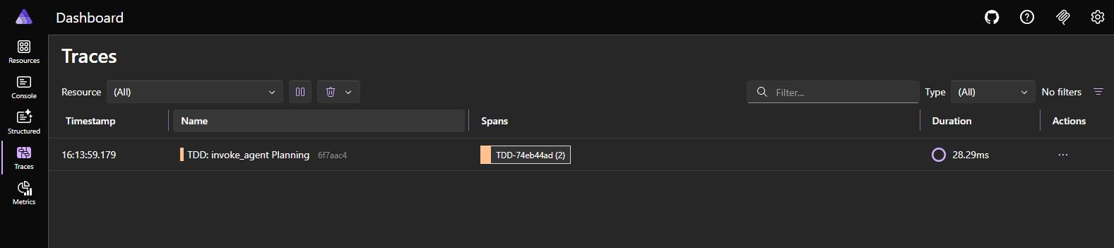 The tests folder contains a dedicated TDD Aspire Dashboard for our telemetry.