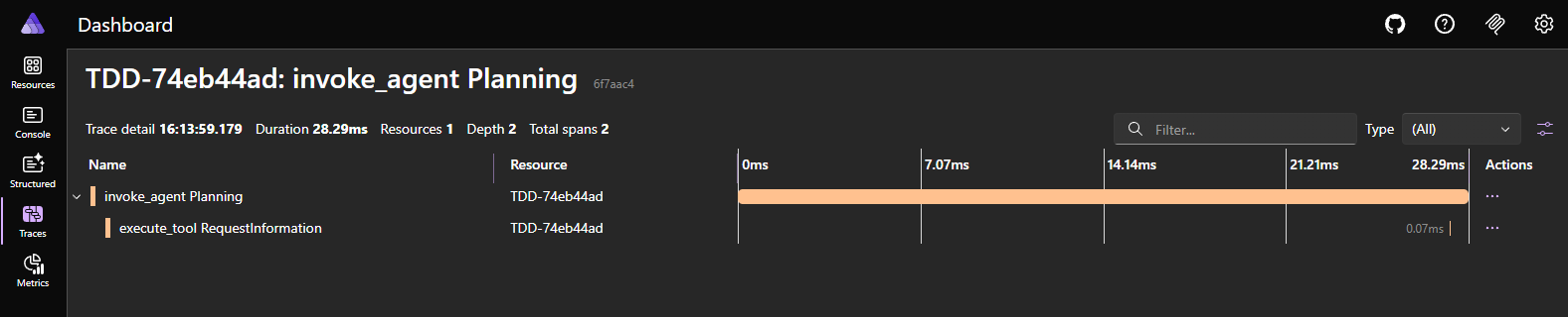 }And then we can run out agent test with Telemetry.
