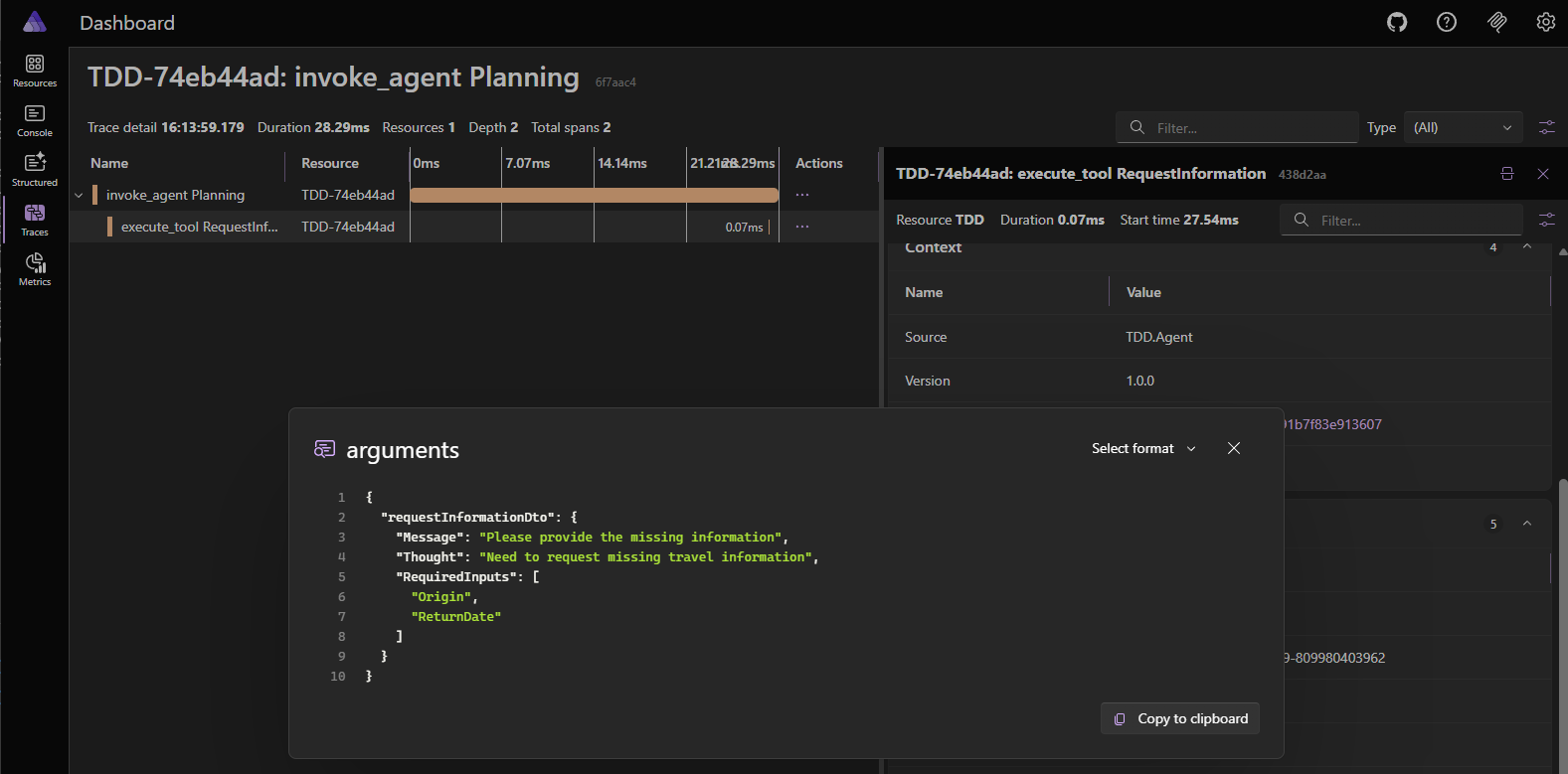 And finally view the tool call arguments event.